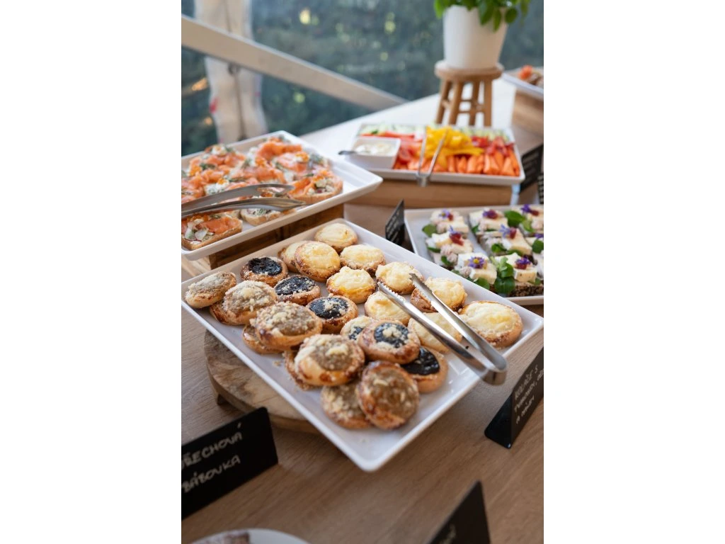 Celý den je zajištěn pitný režim včetně kávy, čajů a na stolech jsou po celou dobu dobroty ze zámecké kuchyně.